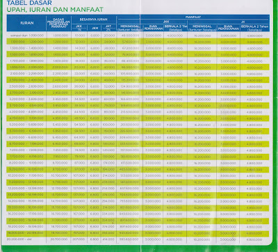 Tentang iuran, bagaimana? Murah kok. Dibanding ikut jaminan sosial serupa, iuran di BPJSTK saaangat terjangkau. Cuma 16.800 per bulan (rincian lebih jelas, bisa lihat foto tabel). Pembayarannya pun mudah, tidak harus datang ke kantor BPJSTK (bisa lewat ATM), dan kita bisa bisa memilih melakukan pembayaran untuk berapa bulan. Misalnya nih, karena khawatir lupa tiap bulannya, kita memilih bayar 1 tahun sekaligus, bisa banget.